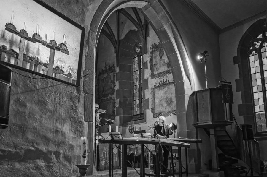 Von Ende April bis Ende Juni 2024 machte sich Georg Glasl als Artist in Residence der Ludwig Seeburger Stiftung in Maulbronn auf eine musikalische Spurensuche in Wehrkirchen der Region. Bei seinem Aufenthalt lernte er den Heimatforscher Roland Straub und den Fotografen Wilfried Gebhard kennen und schätzen. Beide begleiteten das Projekt des Zitherspielers auf ihre Weise: Roland Straubs Filmdokumentation der Uraufführung macht diese nun für einen größeren Kreis von Interessenten erneut sicht- und hörbar. Wilfried Gebhard hielt auf kongeniale Weise fotografisch Eindrücke von Georg Glasls musikalischer Spurensuche in Kirchenburgen fest.